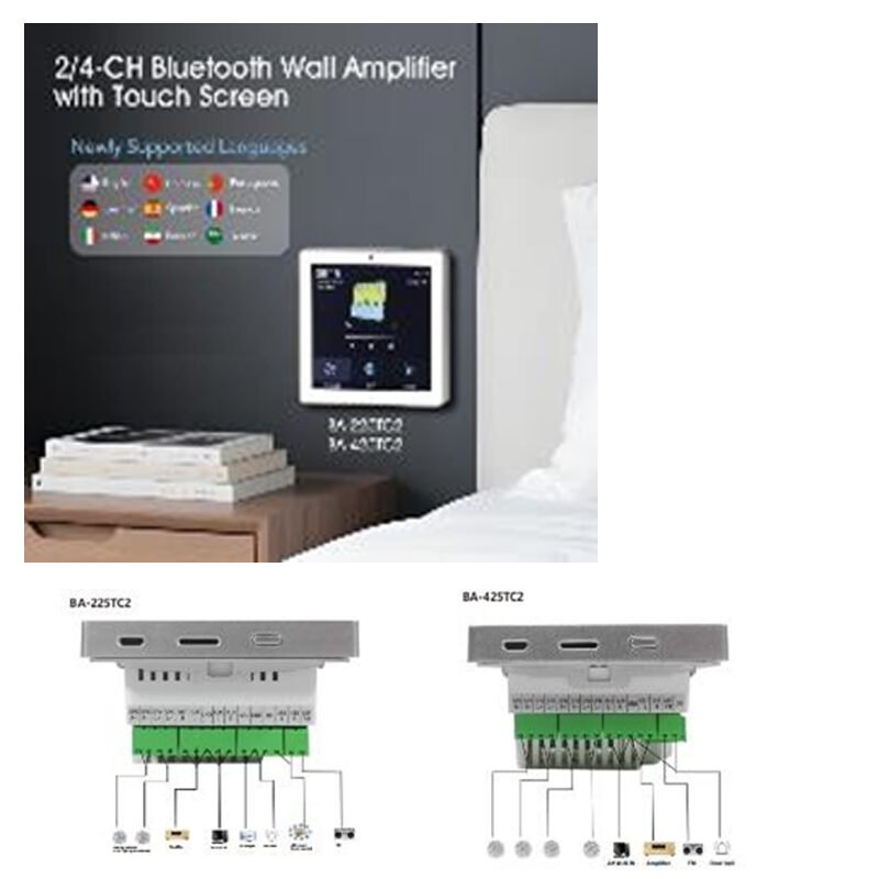 2 & 4 -CH Bluetooth wall amplifier with Touchscreen